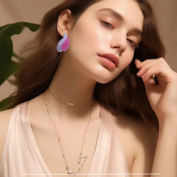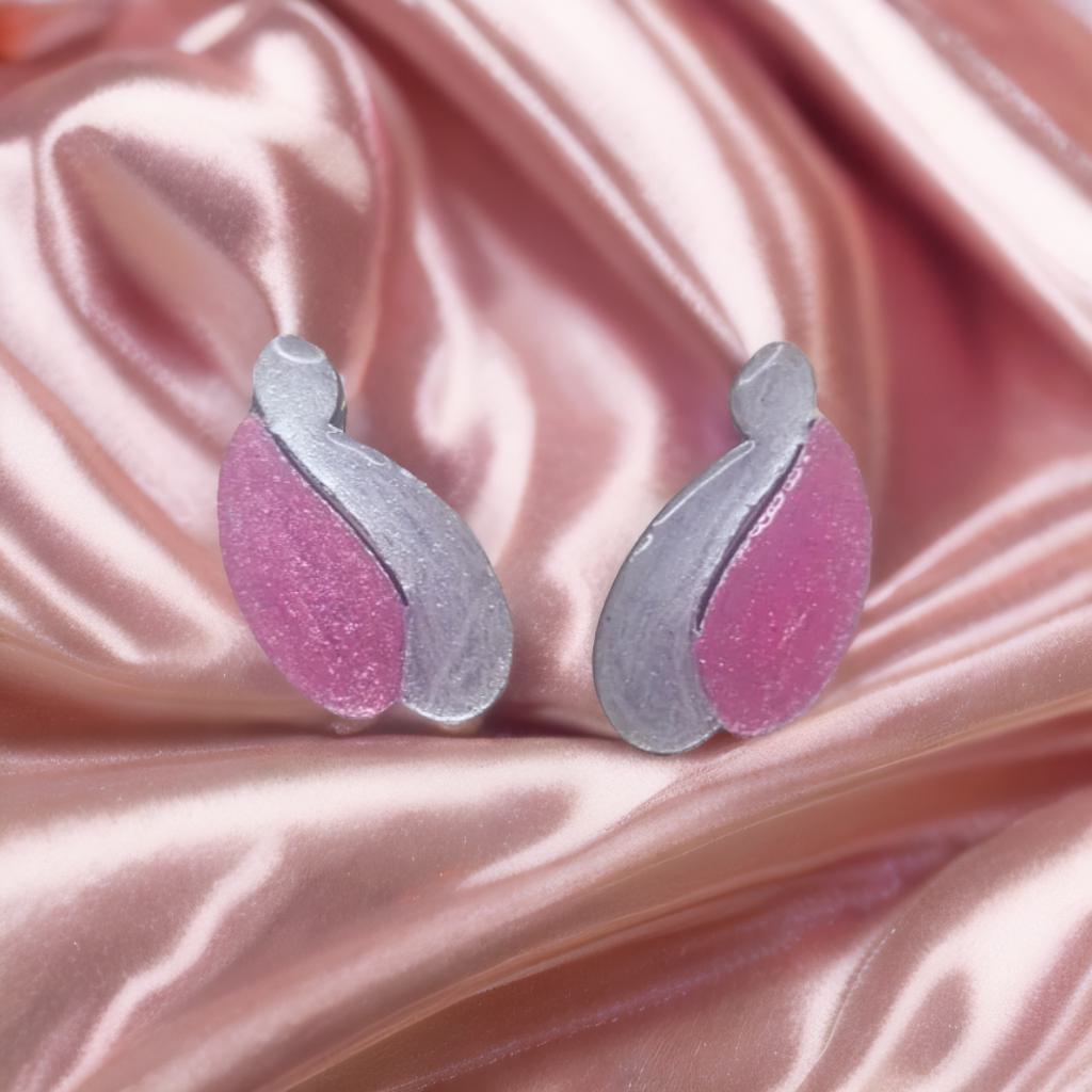 Elegant petal-shaped resin studs featuring a shimmering pink and silver design, blending modern artistry with timeless sophistication. Lightweight and perfect for any occasion.