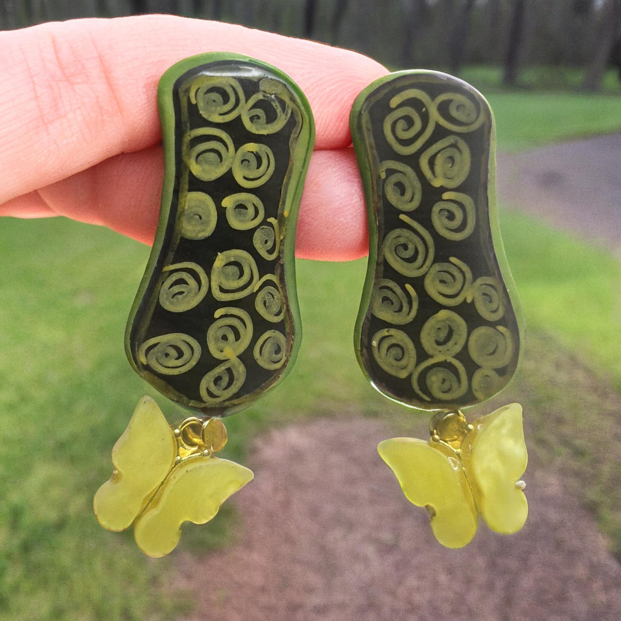 Golden Swirl Butterfly Wooden -Resin Earrings